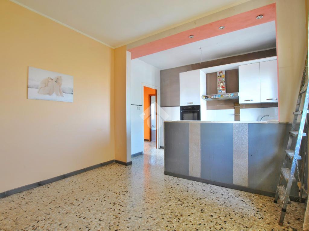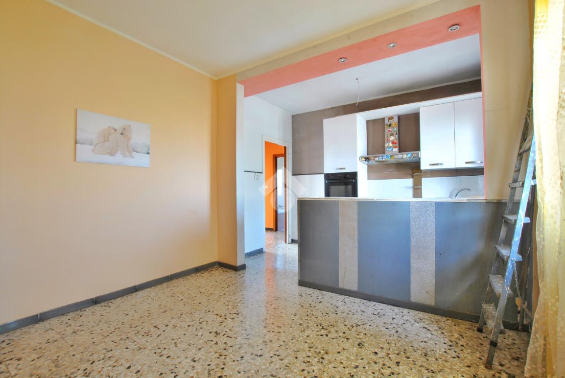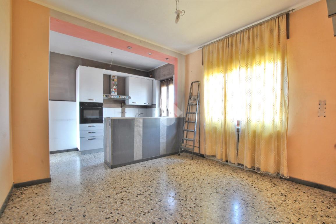 - Cucina: circa 18 mq, composta da un locale unico suddiviso da un muretto che definisce chiaramente l'area cottura e la zona pranzo;