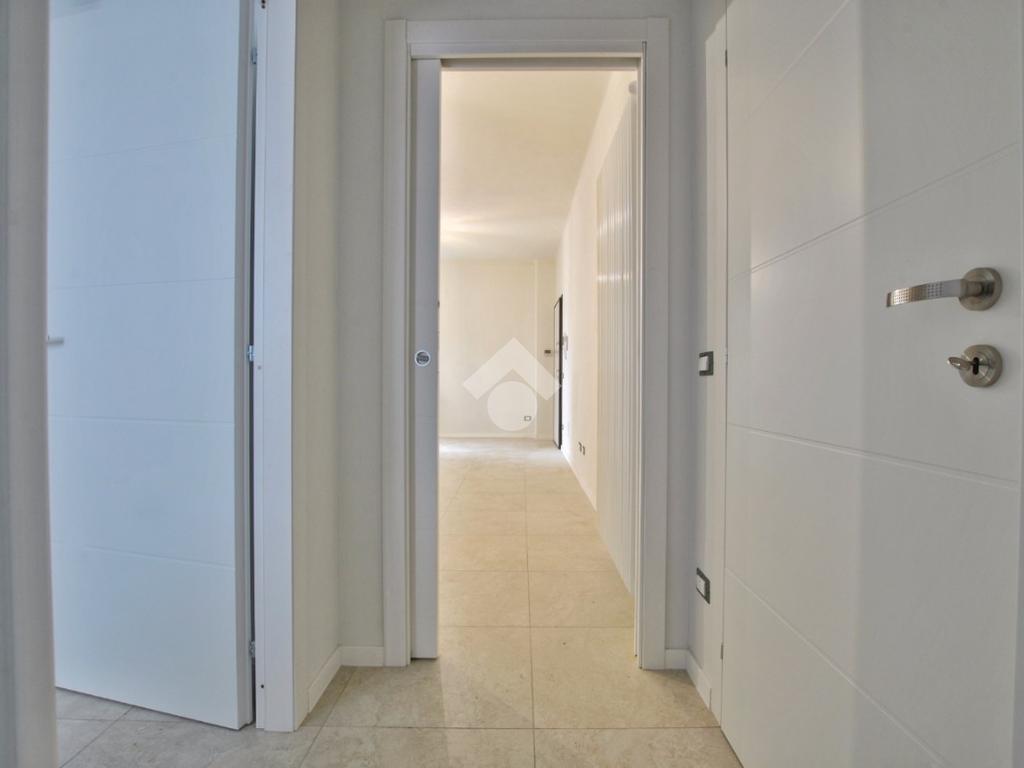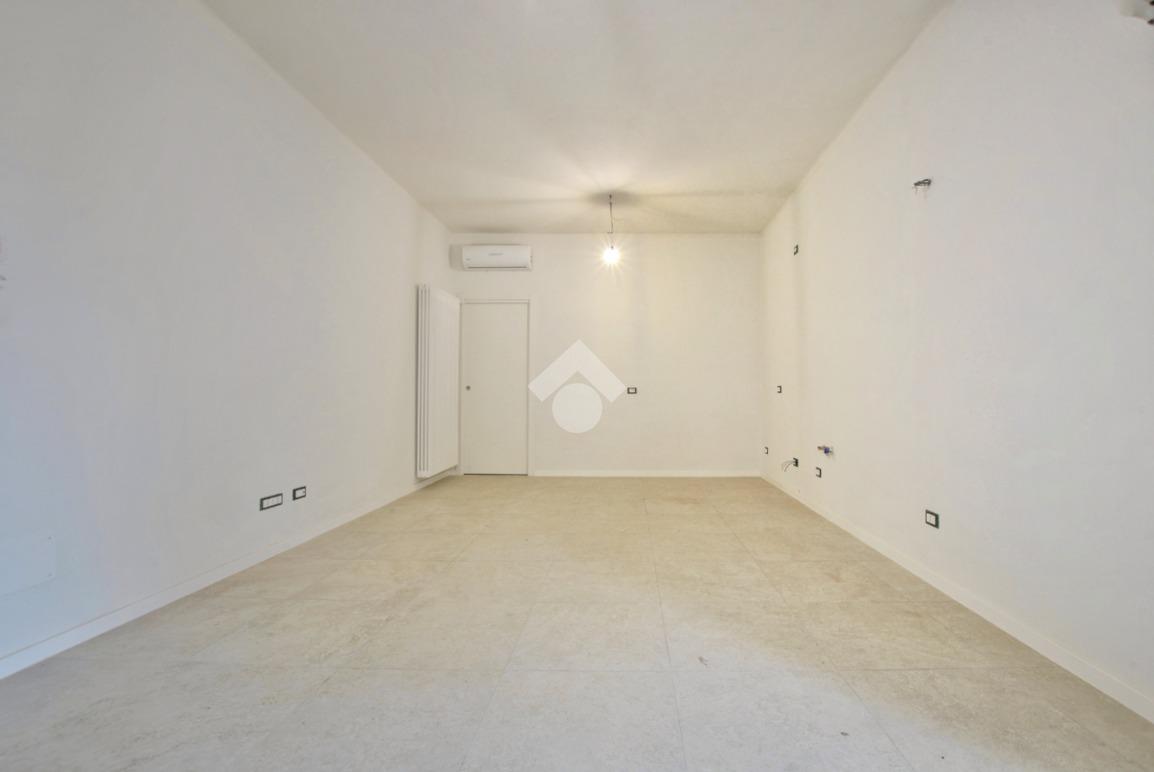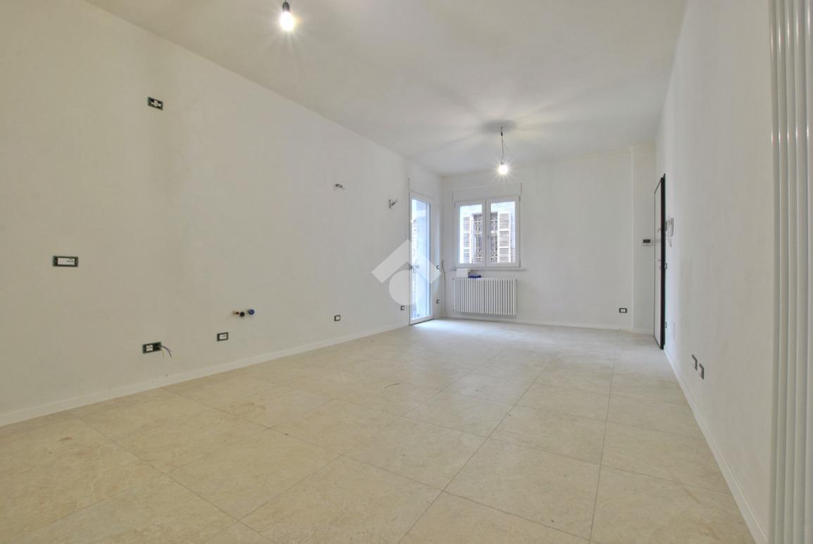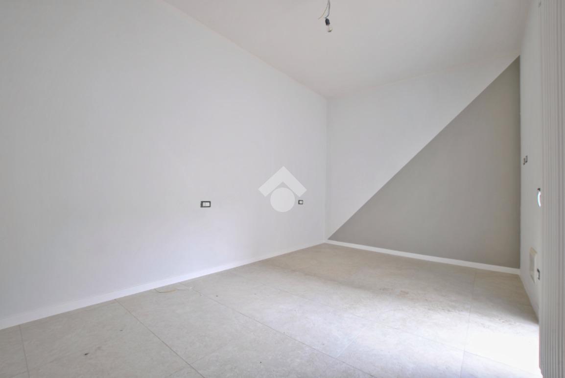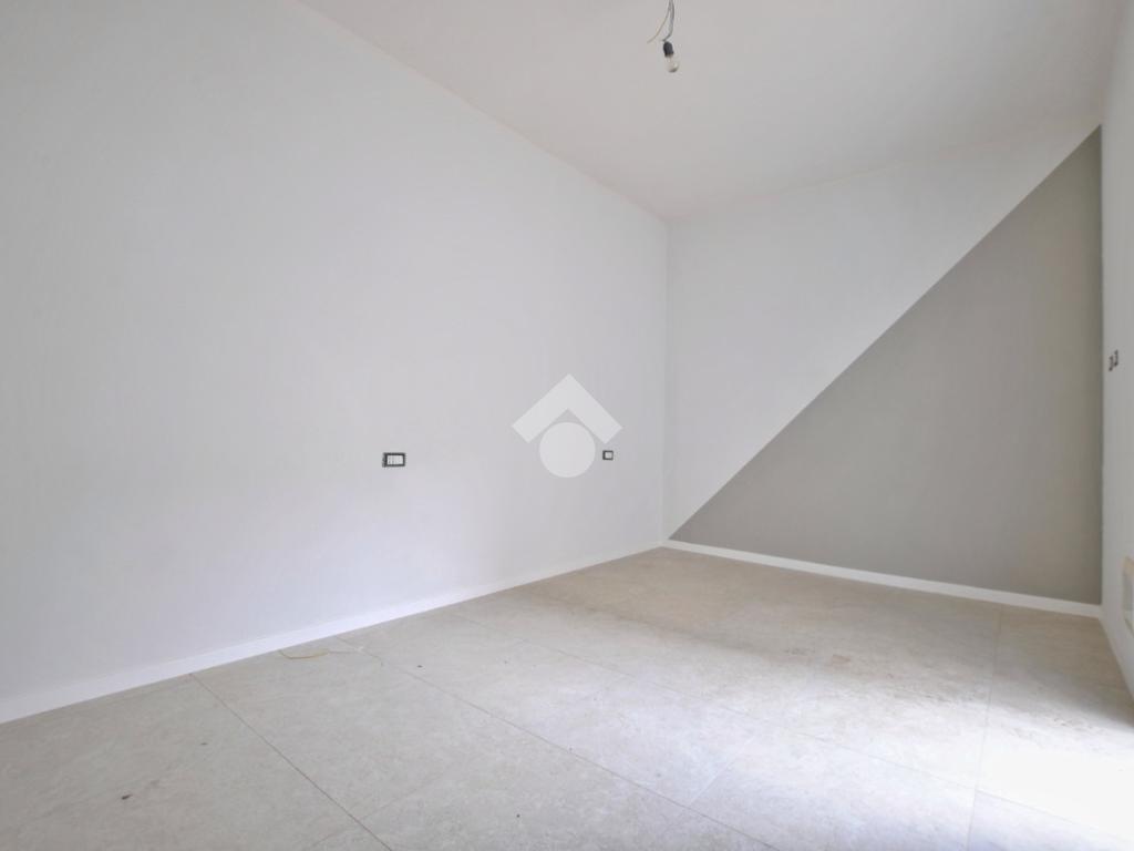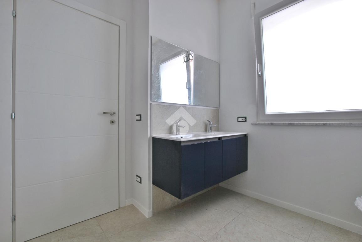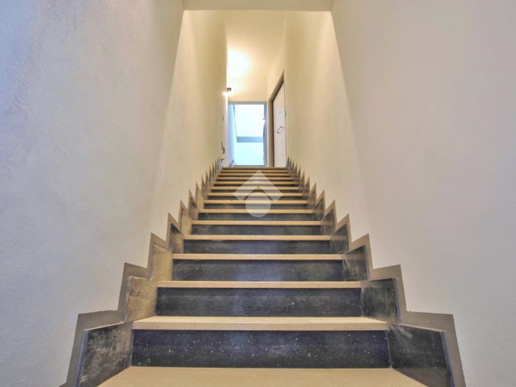 La soluzione è situata al piano rialzato della palazzina ed è dotata di uno sfogo privato, collocato sul retro, ad uso esclusivo della proprietà. Già dalla scala comune si possono notare gli elementi di ristrutturazione innovativi e di design; le luci led applicate su ciascun pianerottolo consentono un’illuminazione perfetta anche di sera, facilitando l’ingresso in ciascuno degli appartamenti. La porta blindata si apre sulla zona giorno open space; la cucina ed il soggiorno si uniscono in un unico ambiente rendendolo intimo e ospitale. Il disimpegno mette in comunicazione gli ambienti e separa la zona giorno dalla zona notte. La camera da letto è matrimoniale, con angolo smart working dedicato. Il cortile, che ribadiamo essere ad uso esclusivo, accessibile tramite la porta finestra della camera, è uno spazio intimo e rilassante. Per il bagno è stata progettata l’installazione di una doccia moderna fuori misura, per garantire il massimo comfort in uno dei momenti più rilassanti della giornata, i sanitari sono sospesi, per agevolare la pulizia degli interni, e la rubinetteria è a risparmio energetico. Il lavabo è doppio ed il termo arredo presente riprende lo stile moderno dei sanitari. Inoltre, al fine di rendere più agibili i servizi, è stato ricavato un vano a sé stante da adibire esclusivamente a zona lavanderia/ripostiglio, con gli allacci per la lavatrice e lo spazio necessario per l’installazione di un’asciugatrice. Per la pavimentazione di tutta casa ed il rivestimento del bagno è stata scelta una nuova collezione di gres porcellanato chiaro rassomigliante il travertino che, con il suo colore caldo beige e con venature che variano dal bianco all’avorio, crea un effetto molto naturale.