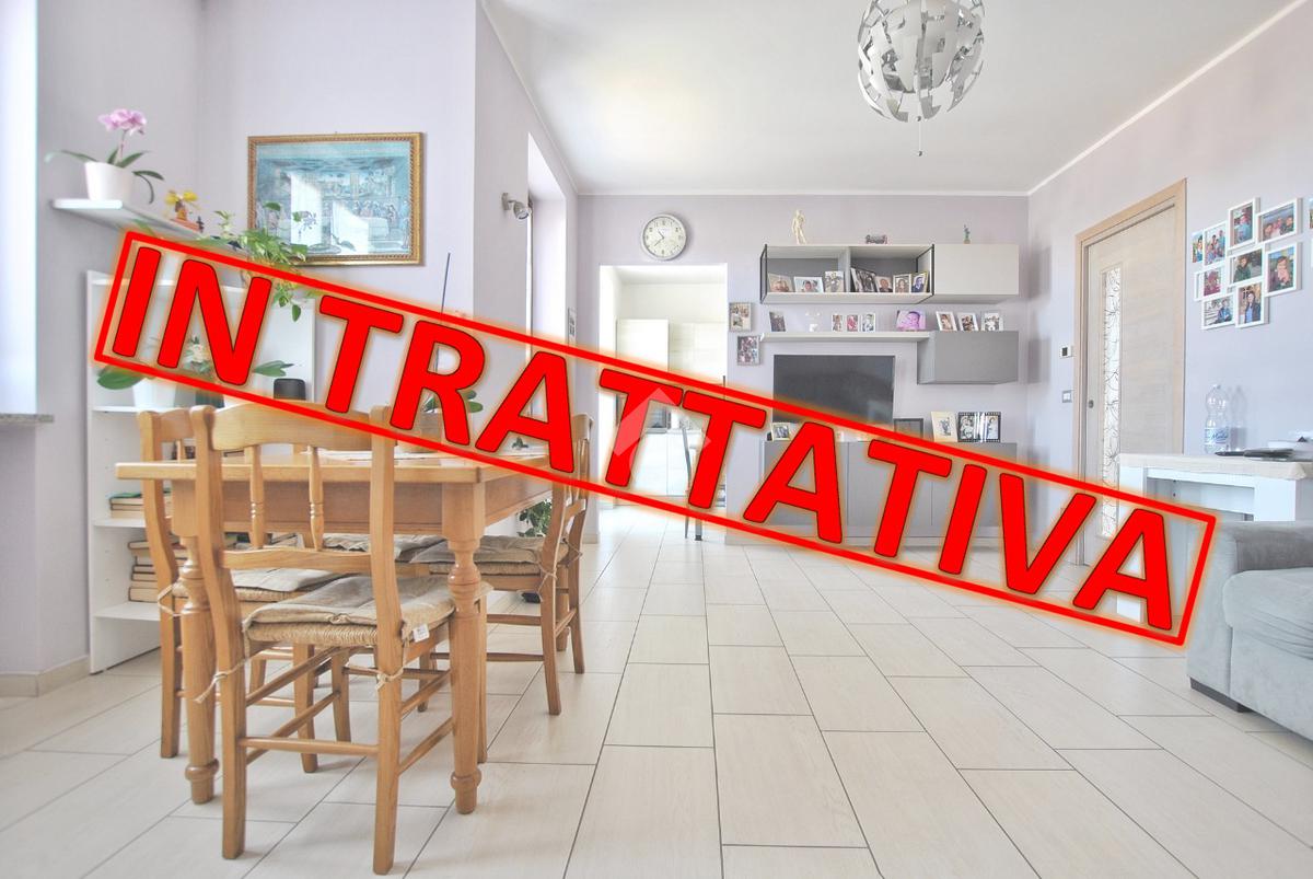 La proprietà si sviluppa in un recente contesto del 2009 ubicato su Via Roma, strada ampia che conduce verso l'uscita del paese. Il complesso è suddiviso in quattro porzioni e l'immobile, oggetto di compravendita, è sito al primo piano. La porta d'ingresso blindata si apre sulla zona giorno: il soggiorno è ampio e luminoso, mentre la cucina, anch'essa luminosa, è abitabile e ha sfogo sul primo dei tre balconi, questo con esposizione ovest. La zona notte si compone di due camere da letto, entrambe con accesso al proprio balcone di pertinenza; questi esposti ad est. Il bagno è accessoriato di doccia ed un ulteriore vano dotato di allacci per la lavatrice.